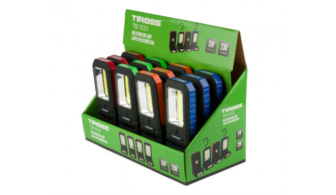 3W COB +3 LED tuld lambi otsas. Varustatud riputuskonksu ja magnetiga, patareitoitega 3 x AAA, on kaasas.