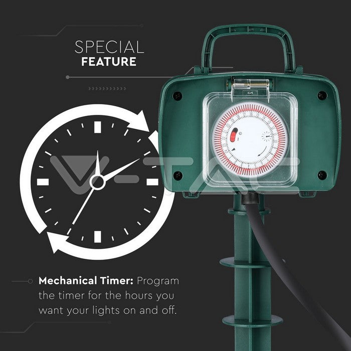 Pikendusjuhe 3m 3G1,5 2pesa roheline taimeriga IP44