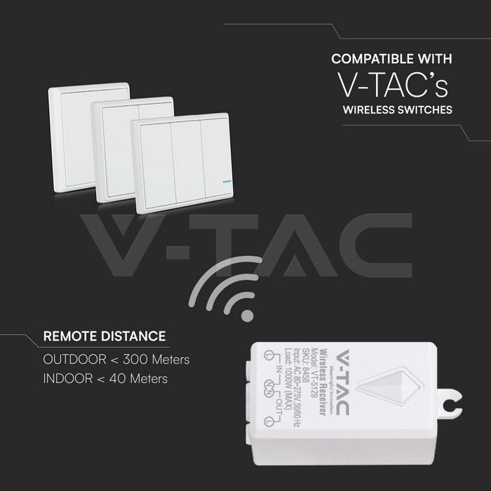 Ühilduvus: sobib kasutamiseks V-TAC juhtmevabade lülititega (SKU: 8460, 8461, 8462)